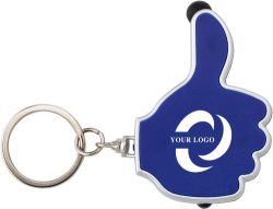 ABS držalo za ključe s pisalom, primerno za kapacitivne zaslone, z belo LED lučko in gumbom, na jeklenem obesku za ključe. Baterije priložene.