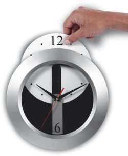 Plastična stenska ura s snemljivo številčnico za prilagajanje. Baterije priložene.