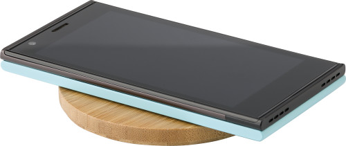 Polnilec iz bambusa z brezžično tehnologijo. Vhodi: V-2A. Izhod: 5V-1A. Z LED indikatorji in mikro USB priključkom. Vključno s kablom.