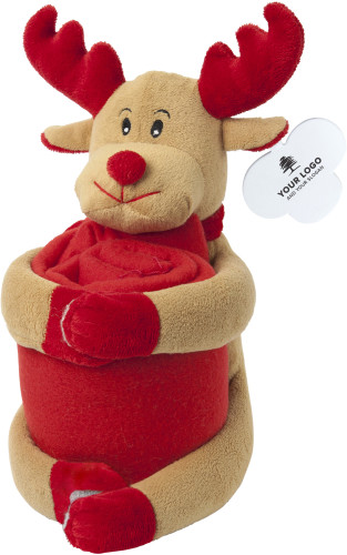 Odeja iz 100 % poliestrskega flisa (180 g/m?) (razpognjena: pribl. 102 x 77 cm). Vključno z mehko igračo na božično temo z oznako za tiskanje. Stopala držijo skupaj z ježki.