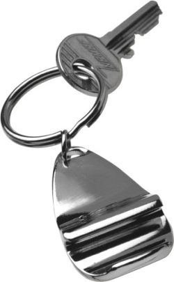 Kovinsko držalo za ključe z odpiračem za steklenice. Pakirano v darilni škatli.