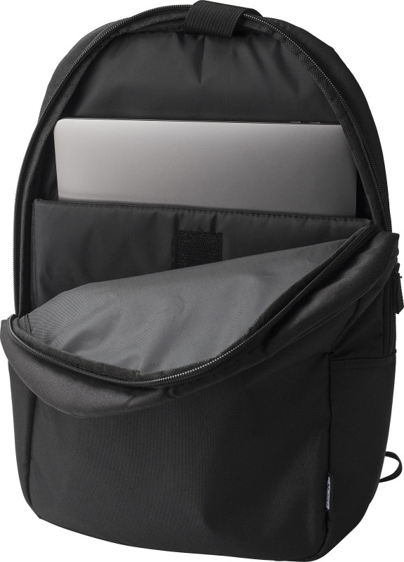 Nahrbtnik za prenosnik iz poliestra RPET  (15 inch). En velik predal. Majhen žep na zadrgo spredaj.