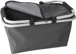 Zložljiva nakupovalna košara iz poliestra (320-330 g/m2), z aluminijastim okvirjem in ročaji z oprijemom iz pene EVA; na vrhu se lahko zapre z zadrgo.