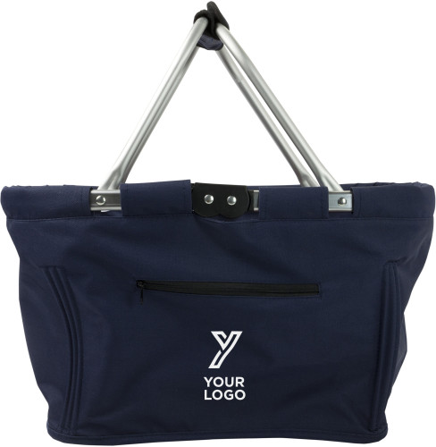 Zložljiva nakupovalna vrečka iz poliestra (600D) s stranskim žepom na zadrgo in aluminijastim okvirjem.