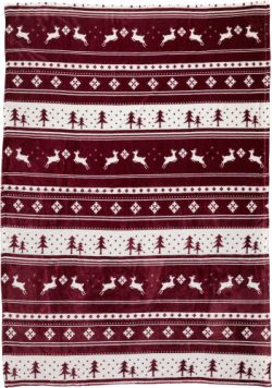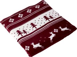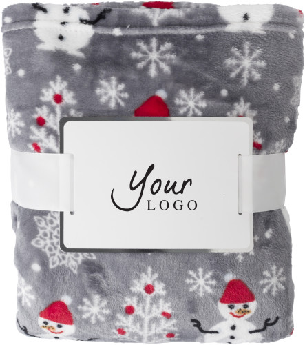 Odeja iz poliestrskega flanelastega flisa (260 g/m?). Odeja je zložena in zavezana s trakom.