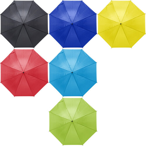 Avtomatski dežnik iz poliestra (170T) z osmimi paneli. Okvir iz kovine in steklenih vlaken ter EVA ročaj.