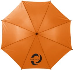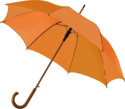 Avtomatski dežnik iz poliestra (190T) z osmimi paneli. Kovinski okvir in lesena gred ter ročaj.