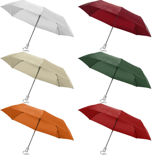 Poliester (190T), zložljiv avtomatski dežnik z osmimi paneli in zapiranjem na ježka. Vključno z rokavom.