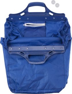 Nakupovalna vrečka iz poliestra (210D) na vozičku s plastičnimi ročaji in dvema plastičnima kovancema za nakupovalni voziček, ki sta dobavljena v notranjem žepu.
