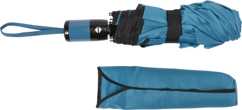 Pongee, zložljiv in avtomatski nevihtni dežnik z osmimi paneli. Okvir iz kovine in steklenih vlaken ter plastični ročaj. Vključno z rokavom.