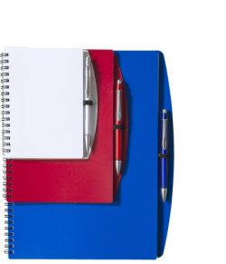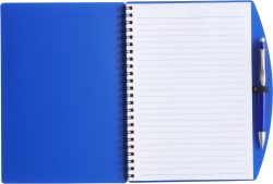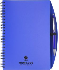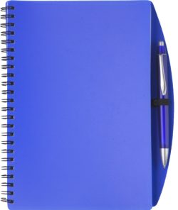 PP, žično vezan zvezek (pribl. A5) s 65 črtastimi stranmi in plastičnim kemičnim svinčnikom z modrim črnilom.
