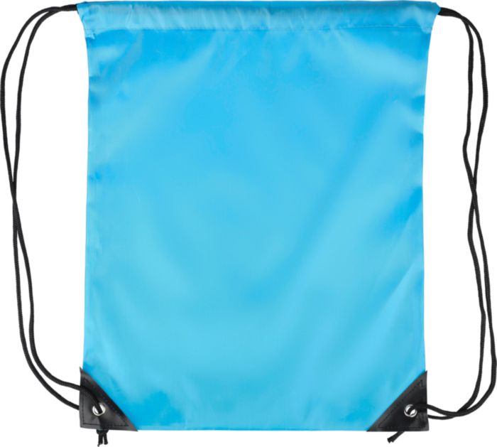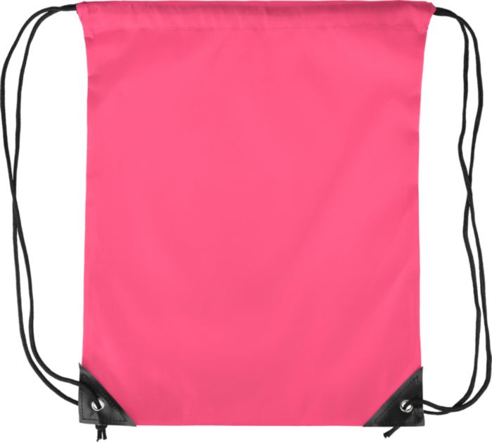 Vrečka nahrbtnik z dvema črnima PU vogaloma na sprednji strani in notranjim šivanjem. Ima črno najlonsko vrvico na vsaki strani in zapiranje z zategljivo vrvico. Prostornina: 5 l. Nosilnost: 7 kg.